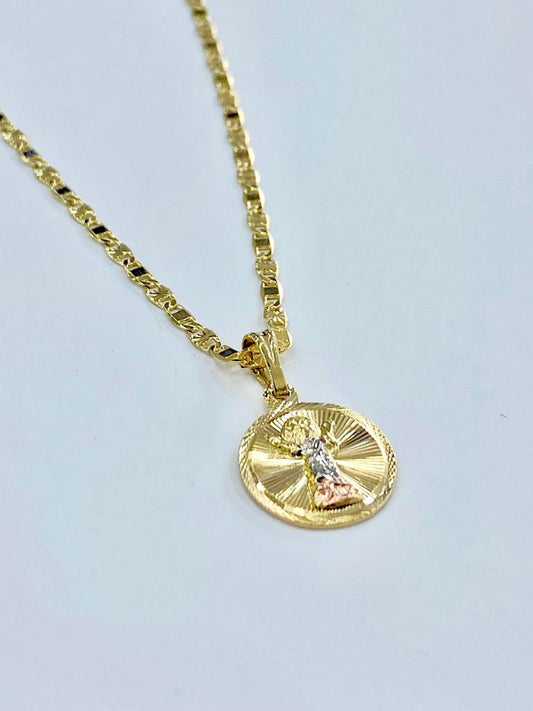 14K Gold Filled Baby Jesus Necklace 16" for Kids Childrens / Divino Niño Pendant 14x8mm / Cable Link Chain Necklace / Cadena con Dije del Divino Niño Oro Laminado