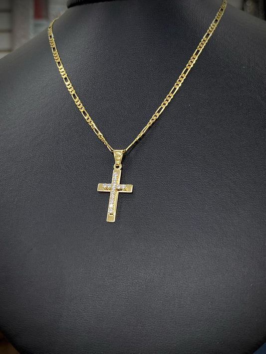 14K Gold Filled Cross Necklace 20” Figaro Link For Men Women 33x18mm / Cadena Figaro Link Y Dije de Cruz Para Hombre / Crucifix Necklace / Figaro Chain