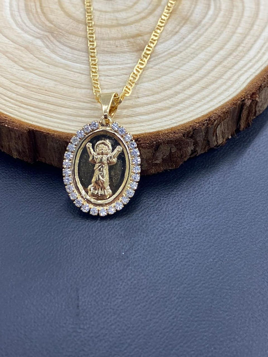 14K Gold Filled Baby Jesus Charm Pendant Necklace 34x20 for Ladies Girls Boys/Divino Nino Necklace/Mariner Link Chain 18"/Cadena Divino Nino