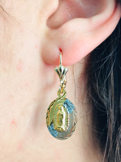 14K Gold Filled Dangling Earrings for Womens / Virgen de Guadalupe Earrings / Dangle Earrings Lever Back / Aretes Colgantes de la Virgen de Guadalupe