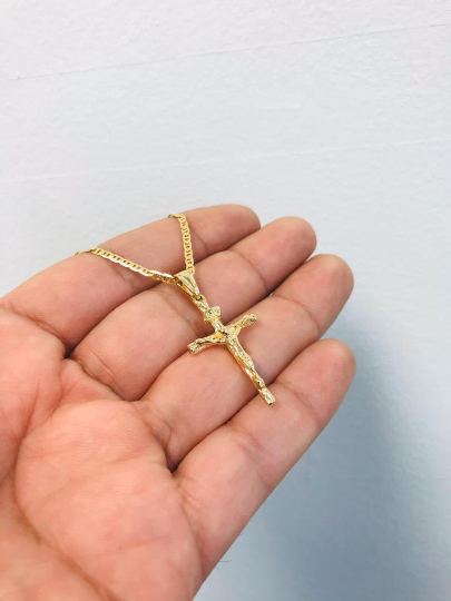 14K Gold Filled Cross Necklace Valentino Chain for Womens Mens 30x18mm
