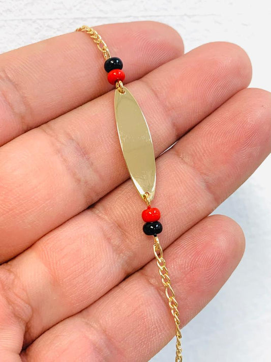 14K Gold Filled Baby ID Bracelet Azabache Figaro Link 5" / Kids Bracelet / Azabache Bracelet / Figaro Link Bracelet / Pulsera para Ninos en Oro Laminado