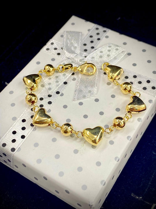 14K Gold Filled Newborn Baby Bracelet Kids Heart Design Minimalist 5.75" Pulsera De Bebe