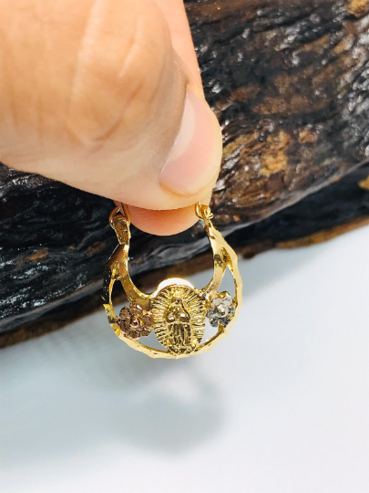 14K Gold Filled Our Lady of Guadalupe Hoop Basket Earrings 3 Color / Argollas de la Virgen de Guadalupe En Oro Laminado / Christmas Gift / Valentines Day Gift