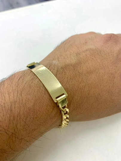 14K Gold Filled Mens Cuban ID Bracelet Curb Chain Bracelet Pulsera Cuban para Hombre