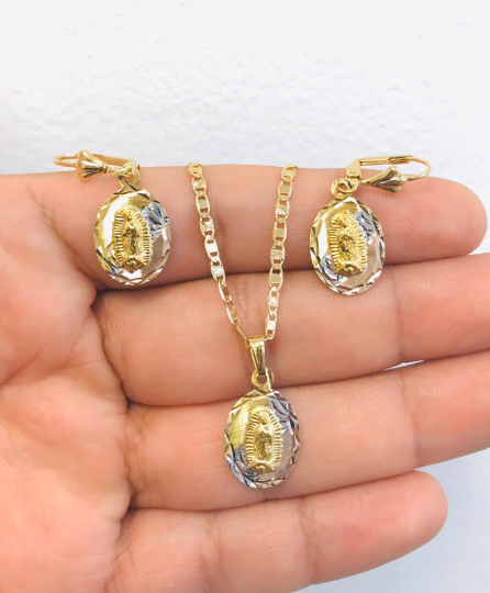 14K Gold Filled Necklace Set Virgen de Guadalupe Earrings 20x13mm / Guadalupe Necklace Pendant / Cadena y Dije de Guadalupe