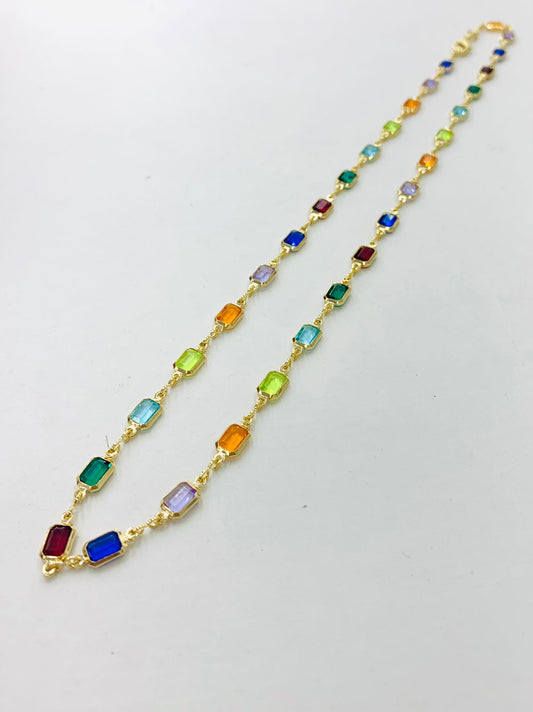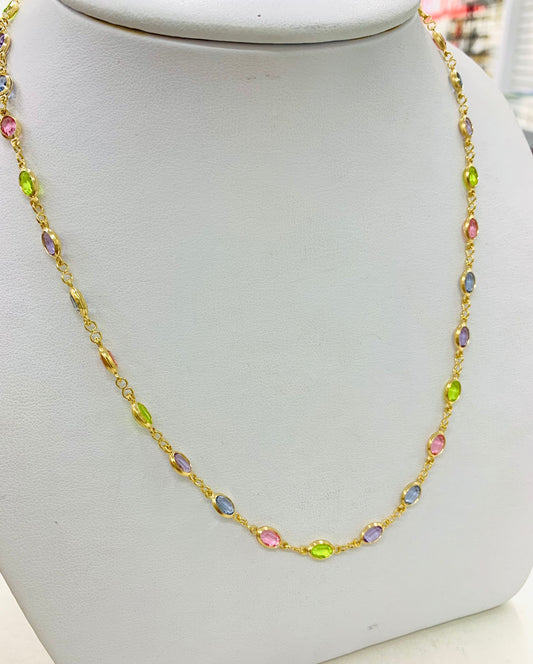 14K Gold Filled Multi Tone CZ Stones Necklace for Womens Ladies 19" / Everyday Necklace / Dainty Tiny Necklace / Cadena Multi Color de Mujer