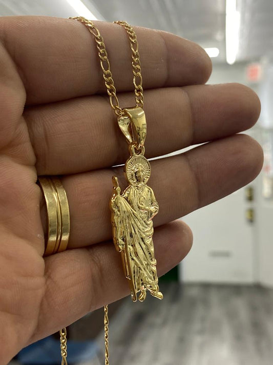 14K Gold Filled San Judas Necklace Pendant 2.5x1" Cuban Link Chain 24" / San Judas Dije y Cadena Cuban / Saint Jude Necklace / Cuban Link Chain for Mens