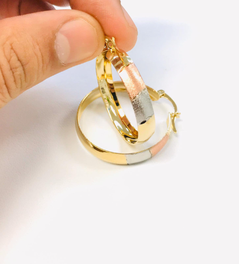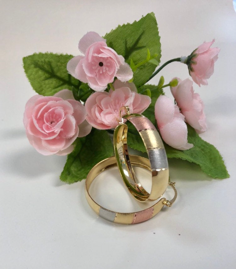 14K Gold Filled Tri-Color Hoop Earrings 49x45mm