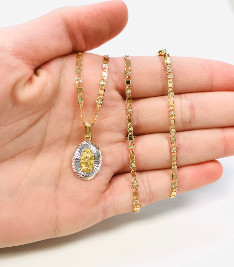 14K Gold Filled Virgen de Guadalupe Diamond Cut Valentino Chain 18" for Womens Gift