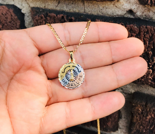 14K Gold Filled Virgen de Guadalupe Necklace 20” Tri-Color Medal 26x18mm / Regalos de Navidad Para Mujer / Dije de Guadalupe Para Mujer