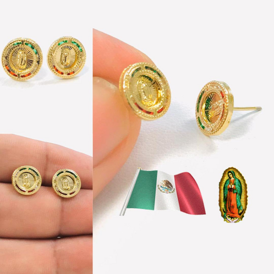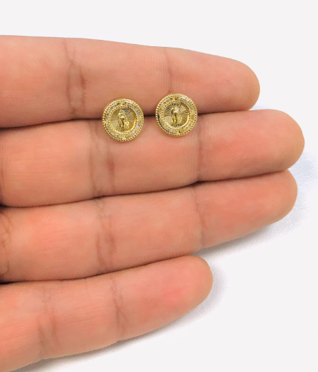 14K Gold filled Virgen de Guadalupe Earrings Screw Back Stud Earrings 10x10mm / Mexican Flag Earrings / Womens Earrings / Aretes de Guadalupe en Oro Laminado