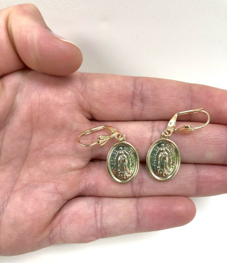 14K Gold Filled Virgen de Guadalupe Dangling Earrings Lever Back Womens Girls
