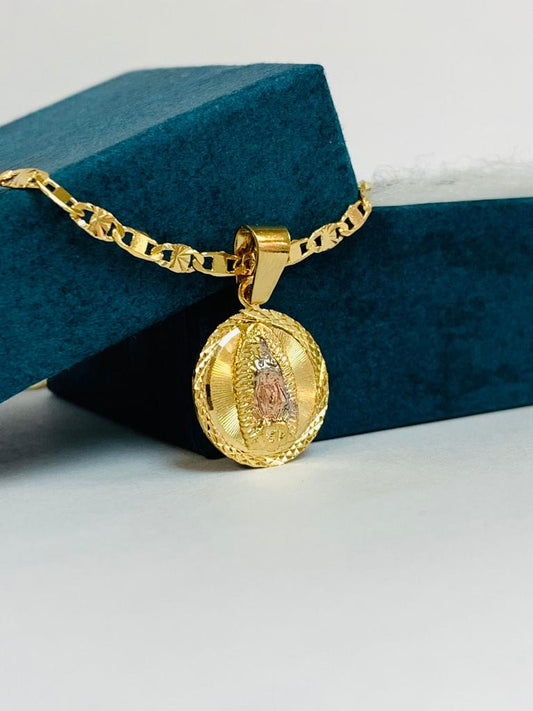 14k Gold Filled Virgen de Guadalupe Necklace 18” 21x18mm Mariner Link Chain / Cadena y Dije Redondo de la Virgencita de Guadalupe en Oro Laminado