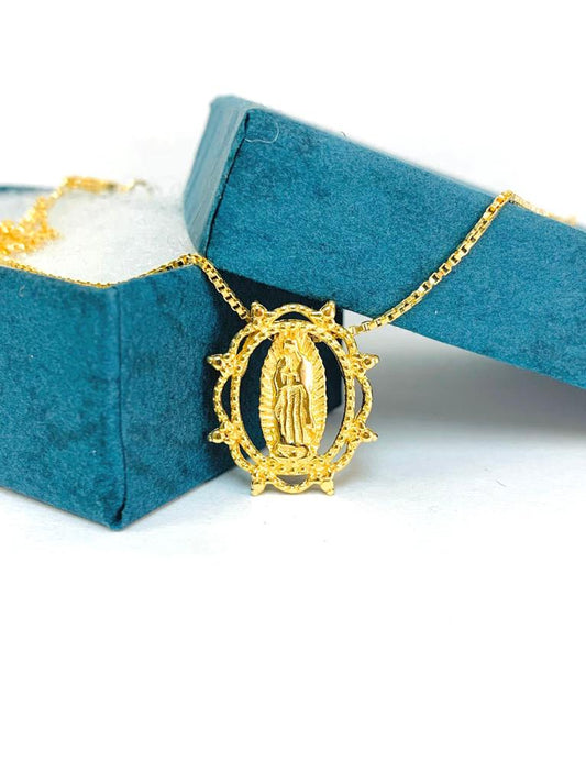 14K Gold Filled Virgen de Guadalupe Necklace 18" / Guadalupe Pendant 20x17mm / Our Lady of Guadalupe Necklace / Cadena y Dije de la Virgen de Guadalupe Oro Laminado / Box Link Chain