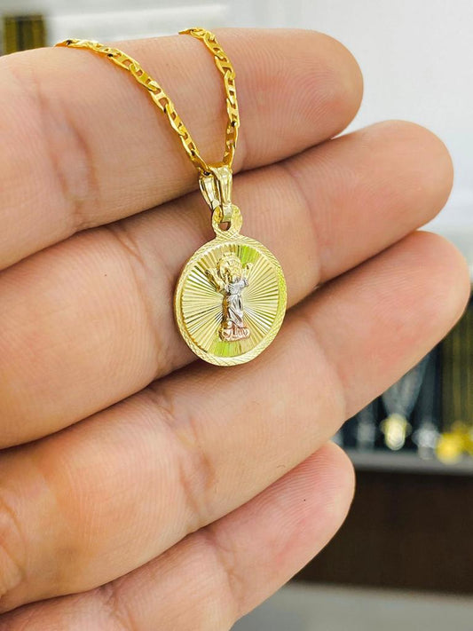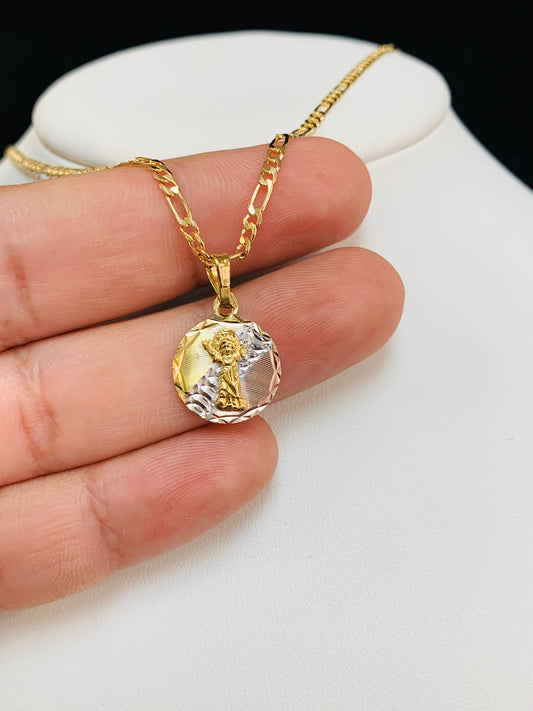 Divino Niño Pendant • Baby Jesus Necklace 20" • Gold Filled Pendant 17x14mm • Divino Nino Necklace • Dije del Divino Nino Con Cadena Figaro