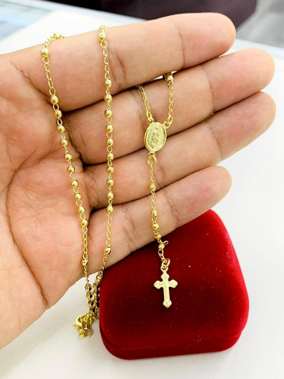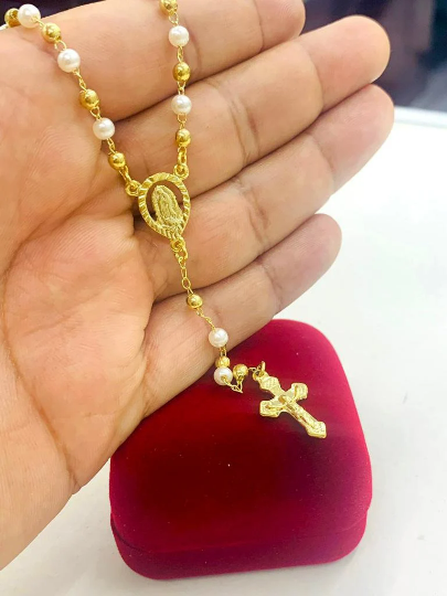 Rosario de la Virgen de Guadalupe Para Ninos Gold Guadalupe Rosary Necklace for Baby Kids 16"