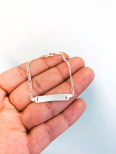 Baby ID Bracelet Figaro Link 925 Sterling Silver 6" Kids Children Bracelet 2.7g Kids Jewelry / Pulsera Para Niños en Plata Pura 2.4mm
