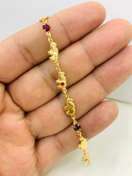 18K Gold Filled Elephant Bracelet for Kids Childrens / Baby Bracelet 6" Inches / Baby Elephant Bracelet for Good Luck & Protection / Pulsera para Ninos.