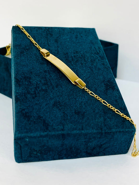 14K Solid Yellow Gold Baby ID Bracelet Kids Childrens Jewelry Figaro Bracelet 6" / Pulsera Oro Real