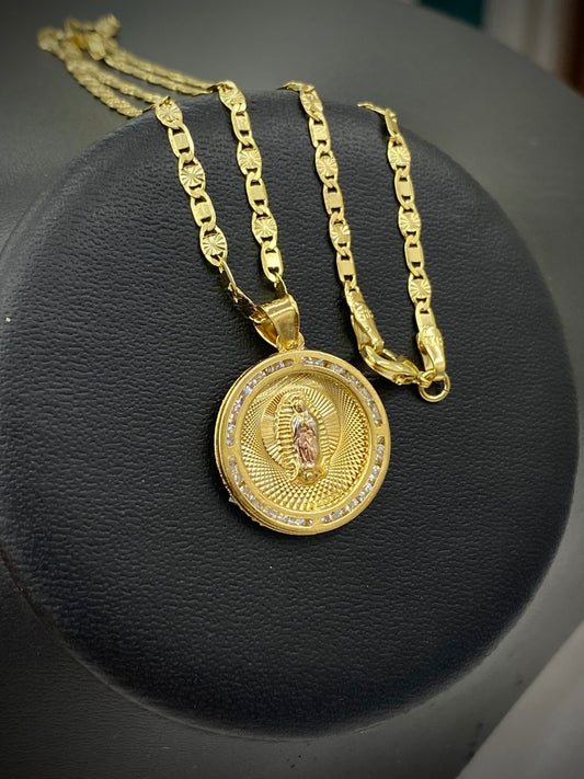 Virgen de Guadalupe Necklace Valentino Chain Charm 23x20 14K Gold Filled Unisex Kids Baby
