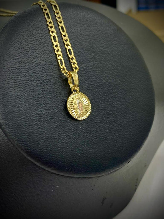 Virgen De Guadalupe Necklace Figaro Chain 14K Gold Filled 14x11mm Unisex Baby Adults