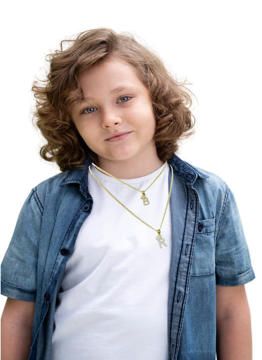 14K Yellow Gold CZ Initials Letters Pendant Charm Necklace Cuban Chain Baby Kids Jewelry Nameplate