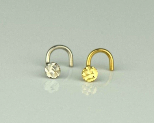 14k Yellow or White Gold Round Flat Ball Nose Piercing Diamond Cut Nose Ring for Womens / Ball Piercing in Solid Gold / Aretes de La Nariz Oro Solido Real 14K