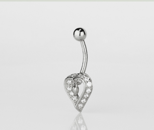 14K Yellow or White Real Gold CZ Dangle Heart Navel Belly Button Ring / Aretes para el Ombligo en Oro Solido Real de Corazón / Gold Body Jewelry / Womens Jewelry Piercing
