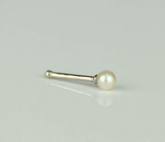 14K Yellow or White Gold Pearl Nose Bone Piercing, Genuine Pearl Nose Studs Ring / Gold Nose Piercing Pearl / Aretes para La Nariz en Oro Real con Perla