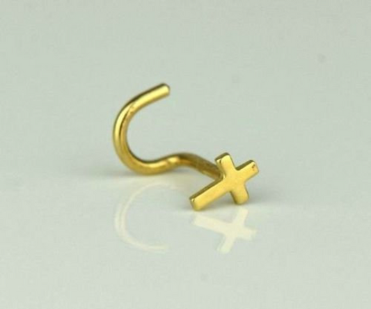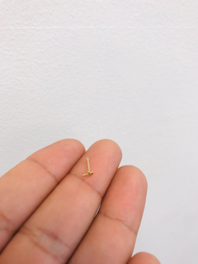 14K Yellow/White Gold Dainty Cross Nose Piercing / Nose Screw Cross Ring / Nose Ring / Cross Nose Ring / Piercing / Aretes de la Nariz / Aretes de Cruz para la Nariz en Oro Real.