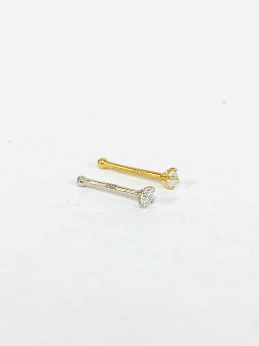 14K Yellow Gold CZ Nose Ring Long Stem 13mm Body Jewelry Girls Womens