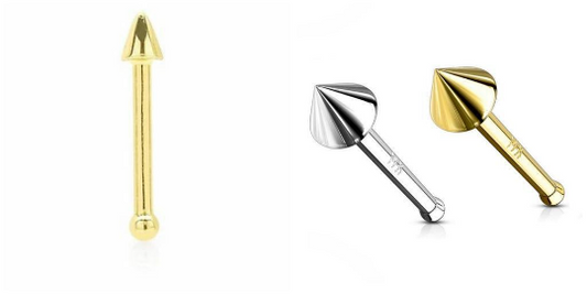 14k Yellow/White Gold Spike Nose Piercing Stud Nose Ring / Body Jewelry for Womens Nose Ring / Aretes para la Nariz en Oro Solido 14K