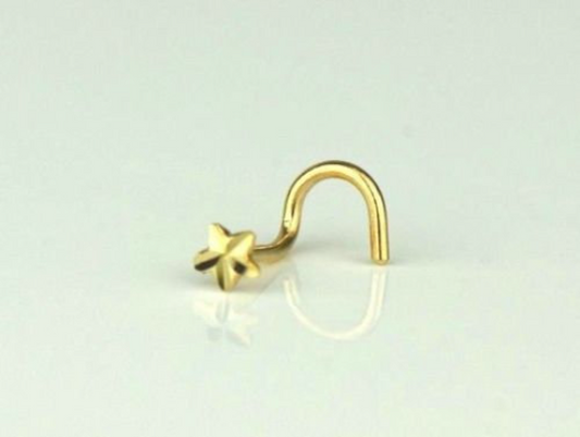 14k Yellow/White Gold Diamond cut Nose Star Piercing Stud / Nose Piercing Curve Stud for Womens / Body Jewelry Nose Piercing / Aretes de la Nariz de Oro Para Mujer