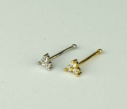 14K Yellow/White Gold Triple CZ Stone Nose Bone Piercing Stud Earrings