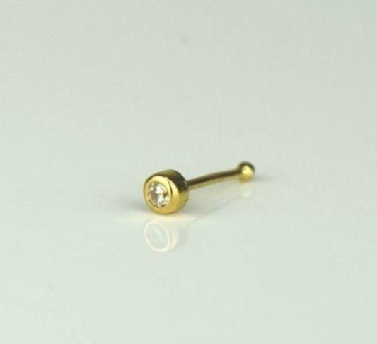 14k Yellow or White Gold CZ Round Bezel Nose Piercing Stud for Womens Mens / Nose Body Jewelry Solid Gold / Aretes de la Nariz Oro Real