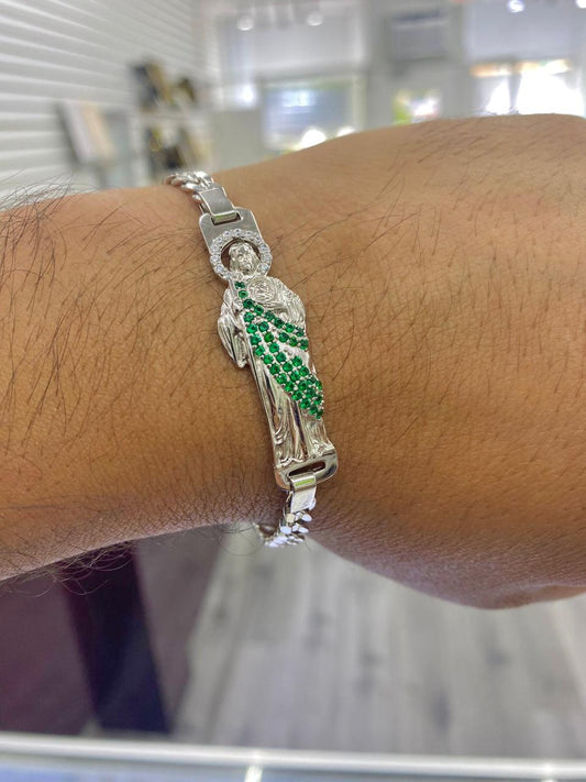925 Sterling Silver Saint Jude Bracelet CZ San Judas Wristband Religious Mens Womens