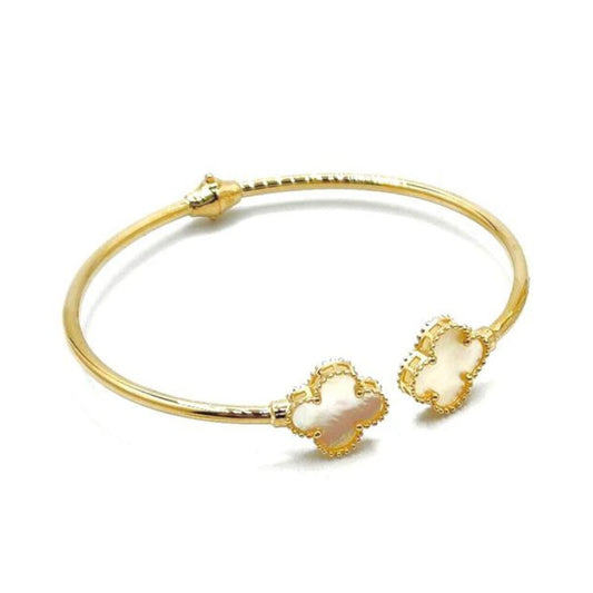 14K Yellow Gold Womens Bangle Bracelet for Ladies Clover Good Luck Piece 7.5g