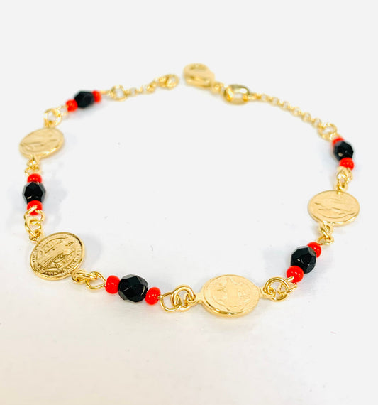 San Bendictus Bracelets Black Red Beads Bracelet for Good Luck & Protection in Gold Filled/ Pulsera de San Benito con Piedras de Azabache para Mujer
