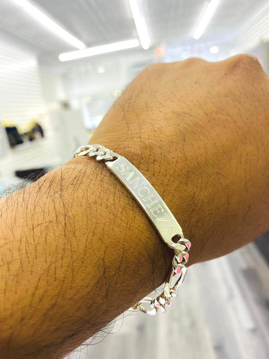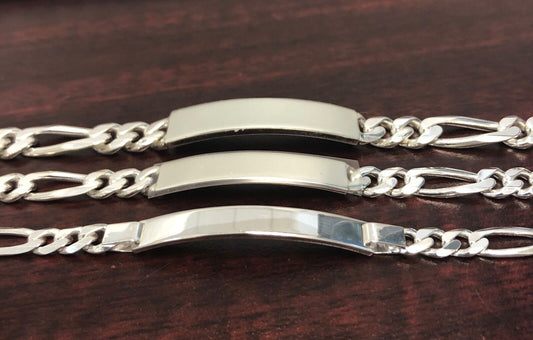 925 Sterling Silver Mens Womens Figaro ID Bracelet Personalized Jewelry 8" Fashion Piece Gifts