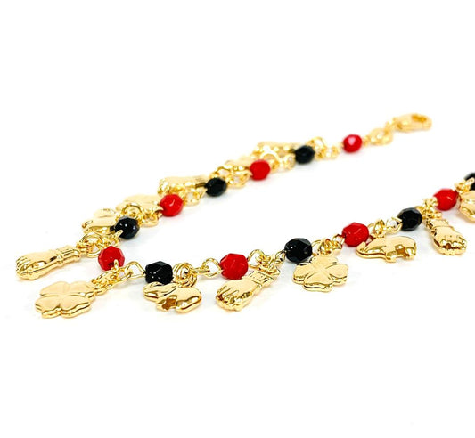 Good Luck Women's Bracelet / Elephant Azabache Hand Bracelet in 14K Gold Filled / Four Leaf Clover Bracelet / Pulsera de Azabache Elefante para Buena Suerte