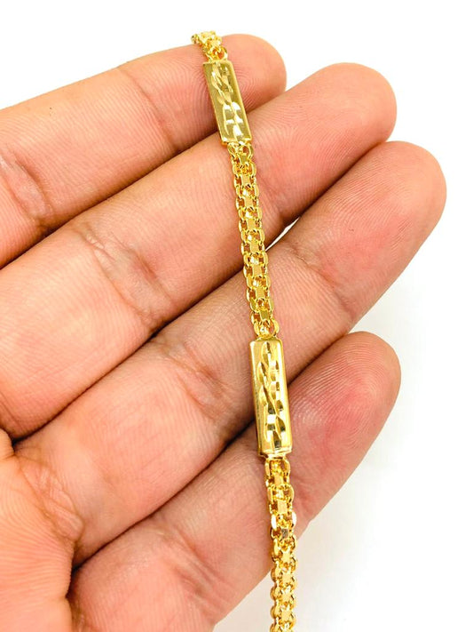 14K Gold Filled Womens Gilrs Diamond Cut Bracelet 7" Fashion Stylish Pulsera Mujer