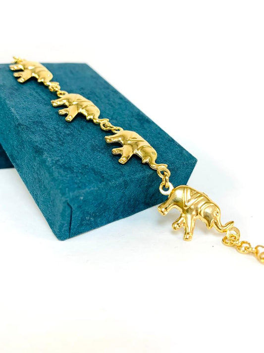 Elephant Bracelet for Womens Gold Filled 7.5" Good Luck Bracelet / Pulsera de Elefante en Oro Laminado / Animals Cable Link Bracelet