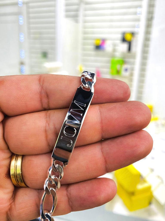 925 Sterling Silver Men's ID Bracelet Figaro Link Chain 8" Fashion Style Gifts for Him
