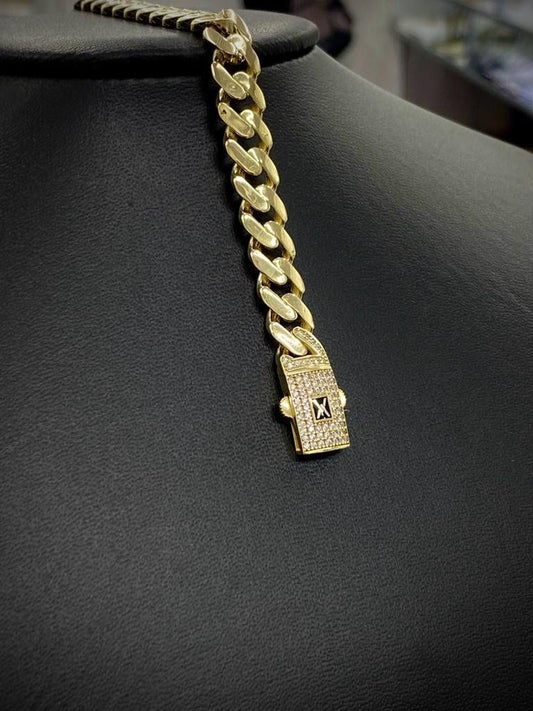 14K Yellow Gold CZ Miami Cuban Link Bracelet Hallow Curb Chain Mens Jewelry 8.25" 37g 12.5mm