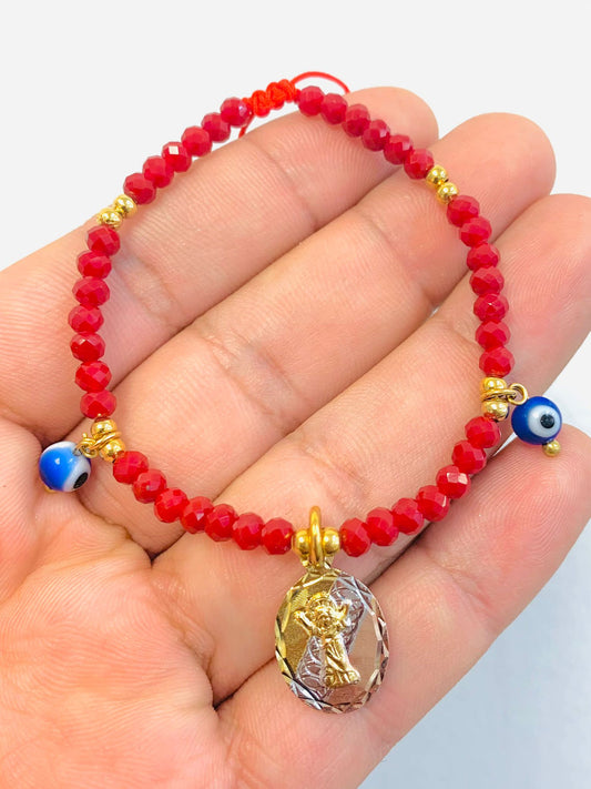 18K Gold Filled Divino Niño Bracelet for Kids Womens Ladies Boys Good Luck & Protection Jewelry Red Beads / Pulsera del Divino Niño en Oro Laminado Para Mujer y Niños para Buena Suerte