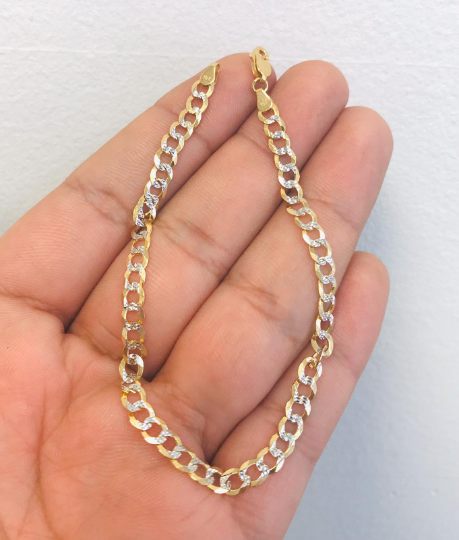 Solid Gold Two Tone Bracelet Cuban Link 10K REAL GOLD Mens Bracelet 8” 4.4g