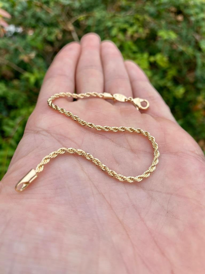 18K Gold Filled Rope Link Bracelet 7" For Women, Rope Link Chain