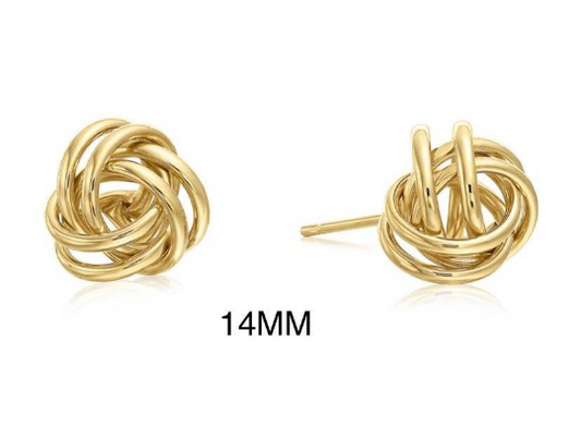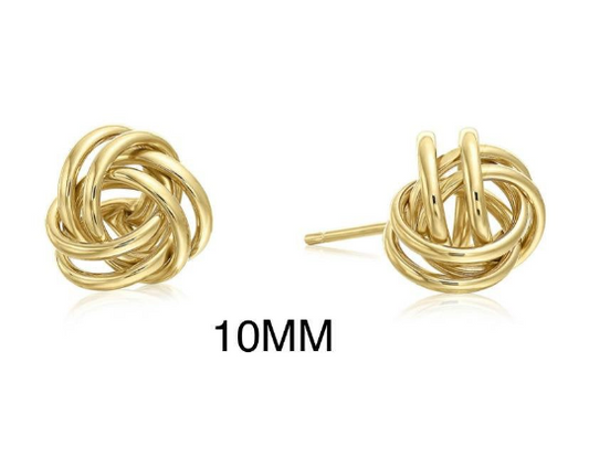 14K Yellow/White Gold, Stud Earrings Push Back 10MM, Polished Love Knot