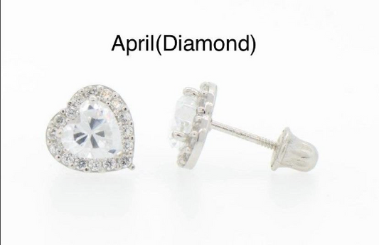 14K Yellow/White Solid Gold Stud Earrings Screw Back Heart Earrings